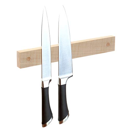 This unit is worth every penny. Woodsom offers multiple sizes, including custom lengths, ranging from 8 inches to 36″. You’ll have the choice of nine different types of natural wood like maple, oak, walnut, hickory, and cherry that are all finished with food-safe oil. This unit boasts a large surface area to hold plenty of knives or other suitable kitchen items, and the powerful magnet will ensure they stay put. With incredible craftsmanship, this storage solution would be an excellent investment.